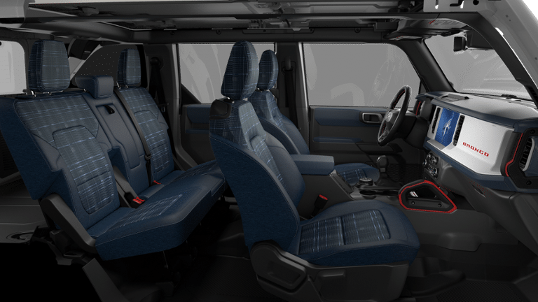 Step inside the Bronco Heritage Edition, and you'll be greeted by a cabin that seamlessly blends rugged functionality with refined sophistication. The plaid cloth front heated bucket seats provide unparalleled comfort, while the heated steering wheel and dual-zone automatic climate control ensure you and your passengers stay cocooned in a perfect climate, no matter the conditions outside.