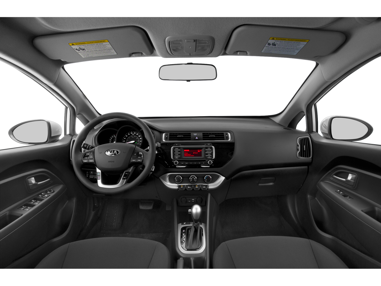 Inside, the Rio LX offers a spacious and well-appointed cabin. The split-folding rear seat and driver's door bin provide ample storage space, while the woven cloth seat trim adds a touch of sophistication. The driver's vanity mirror, outside temperature display, and trip computer enhance your driving convenience.
