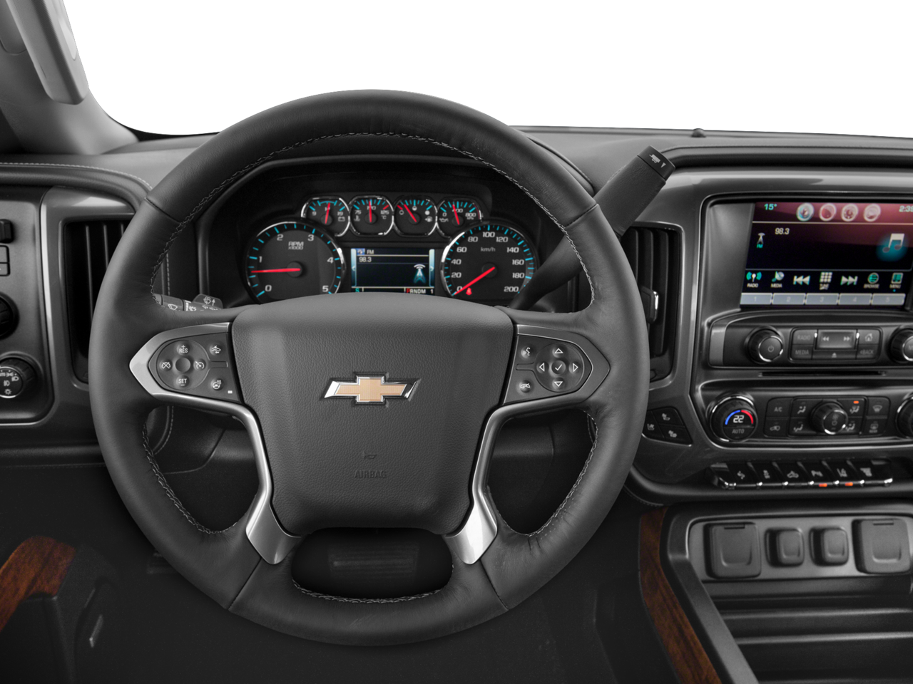 - Audio system, Chevrolet MyLink Radio with Navigation and 8" diagonal color touch-screen, AM/FM stereo with seek-and-scan and digital clock, includes Bluetooth® streaming audio for music and select phones; USB ports; auxiliary jack; voice-activated technology for radio and phone; and Shop with the ability to browse, select and install apps to your vehicle. Apps include Pandora, iHeartRadio, The Weather Channel and more.