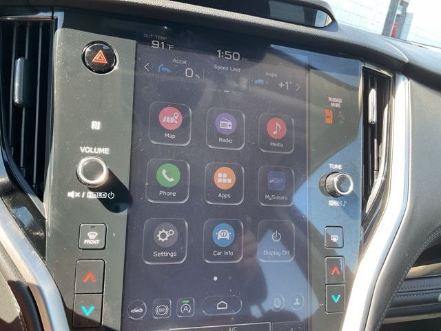 - Radio: Subaru STARLINK 11.6" Multimedia Nav System -inc: AM/FM stereo, HD Radio, valet mode, multi-touch gesture high resolution display screen, voice activated controls and navigation, Bluetooth audio streaming and hands-free phone connectivity w/SMS text messaging (refer to subaru.com for cell phone compatibility), Near Field Communication (NFC), TomTom navigation software w/What3words, iPod control capability, SiriusXM 360L Platinum trial (4 months free trial/subscription required after), SiriusXM Traffic (3 years free trial/subscription required after), SiriusXM Travel Link (3 years free trial/subscription required after), smartphone integration: Android Auto and Apple CarPlay w/full screen view and wireless connection and STARLINK cloud applications (refer to subaru.com for app availability), USB and Over The Air (OTA) audio system update, USB/Map Over The Air (MOTA) TomTom navigation system update (3 years free map updates), audio system and Bluetooth steering wheel control switches, 576 watt harman/kardon surround sound system w/12 speakers, illuminated 3.5mm auxiliary input jack and illuminated USB-A and USB-C input/charge ports SiriusXM Platinum trial available after launch, possibly October 2023.